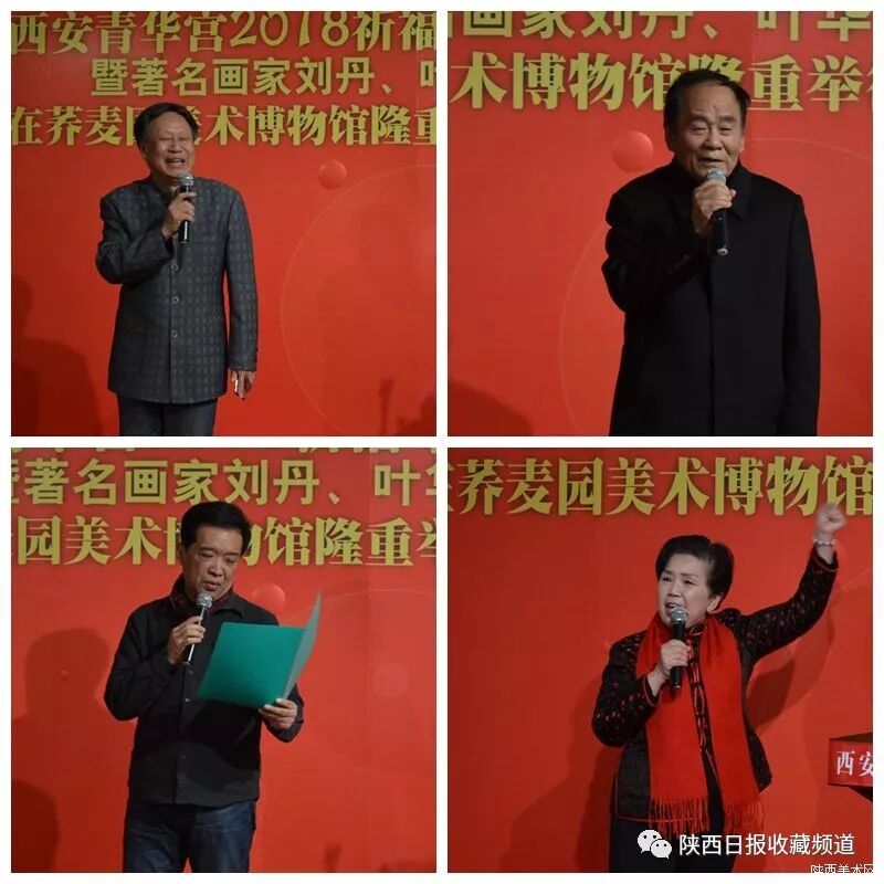 2018年2月10日下午17时,来自文艺界、书画界、收藏界、企商业界及社会各界的社会名流汇聚一堂,共同见证和出席了由西安青华宫主办,西安美院国画系、贾平凹艺术研究院、陕西名人书画院、西安荞麦园餐饮协办,西安荞麦园美术博物馆承办的“2018迎新春——青华宫祈福年会暨刘丹、叶华、陈斌三人中国画邀请展”在西安荞麦园美术博物馆举行的画展开幕式。著名画家江文湛,著名文化学者商子雍,西安美院教授刘永杰,著名诗人商子秦,陕西国画院院长范华,西安美院国画系党总支书记魏富乾,著名歌唱家冯健雪,著名朗诵艺术家海茵、包志坚,文化学者、著名书画家李少颇,西安荞麦园美术博物馆馆长薛莹巧,西安青华宫道长黄世真,陕西省道教协会副秘书长孙刚,太平寺主持宏证法师,画家武晓丽、陈联喜、张立及西安交大留学生、艺术爱好者、收藏家等200余人出席了画展开幕式。陕西广播电台主持人银河主持仪式。