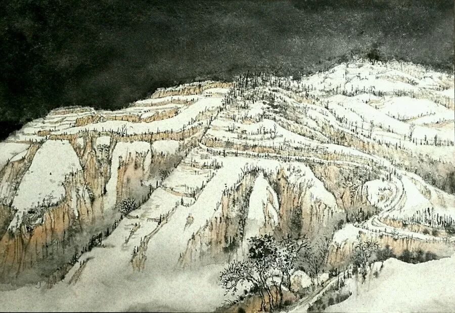 “大雪”之日,惠见推出画家许飞雪景系列作品。其山水画多为黄、黑、白三色的配搭,其色调给人以厚重、淳朴、苍凉、深沉的感觉。一幅山水画,就像一首浑厚雄壮的交响乐!