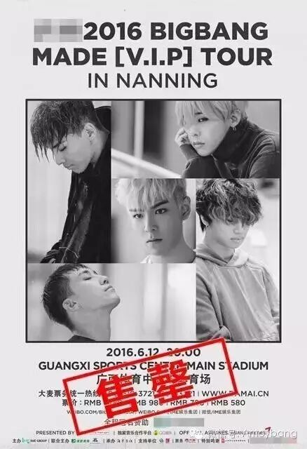 就算无法到韩国观赏电影《BigBang MADE》也别灰心,“2016 BIGBANG MADE [V.I.P] TOUR”的中国巡演也已经开始!