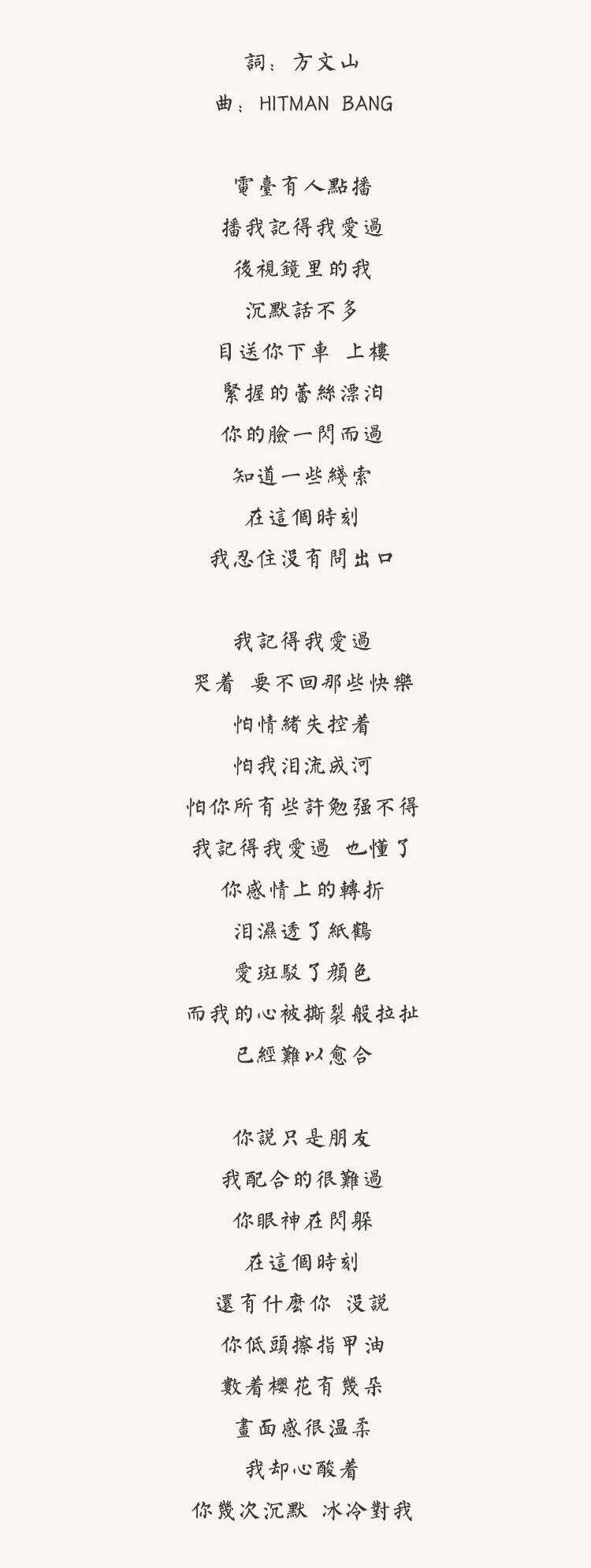 2010 年,何润东将它翻唱为中文版:《我记得我爱过》。