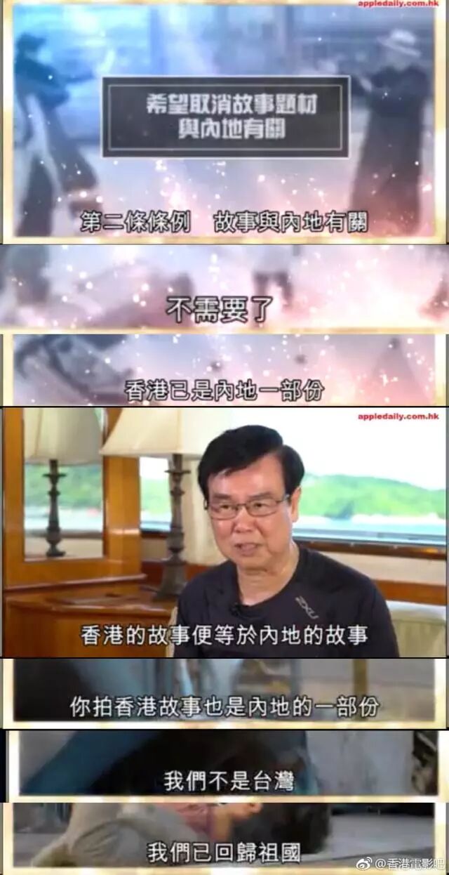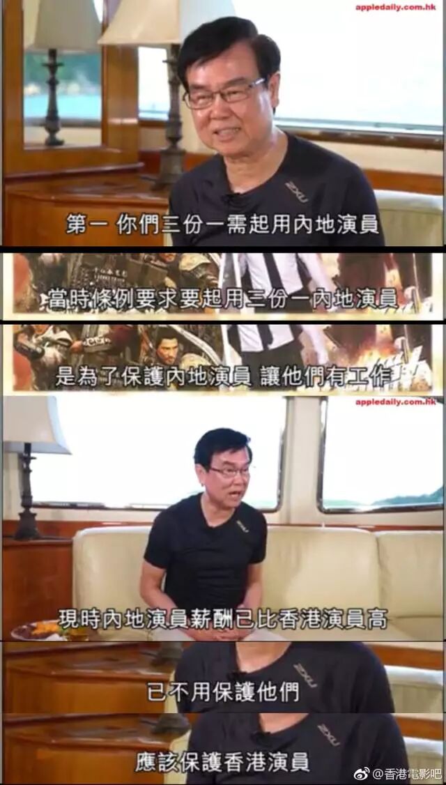香港与内地合拍片视为国产影片在内地发行,港方主创人员所占比例不受限制,内地主要演员的比例不得少于影片主要演员总数的三分之一;