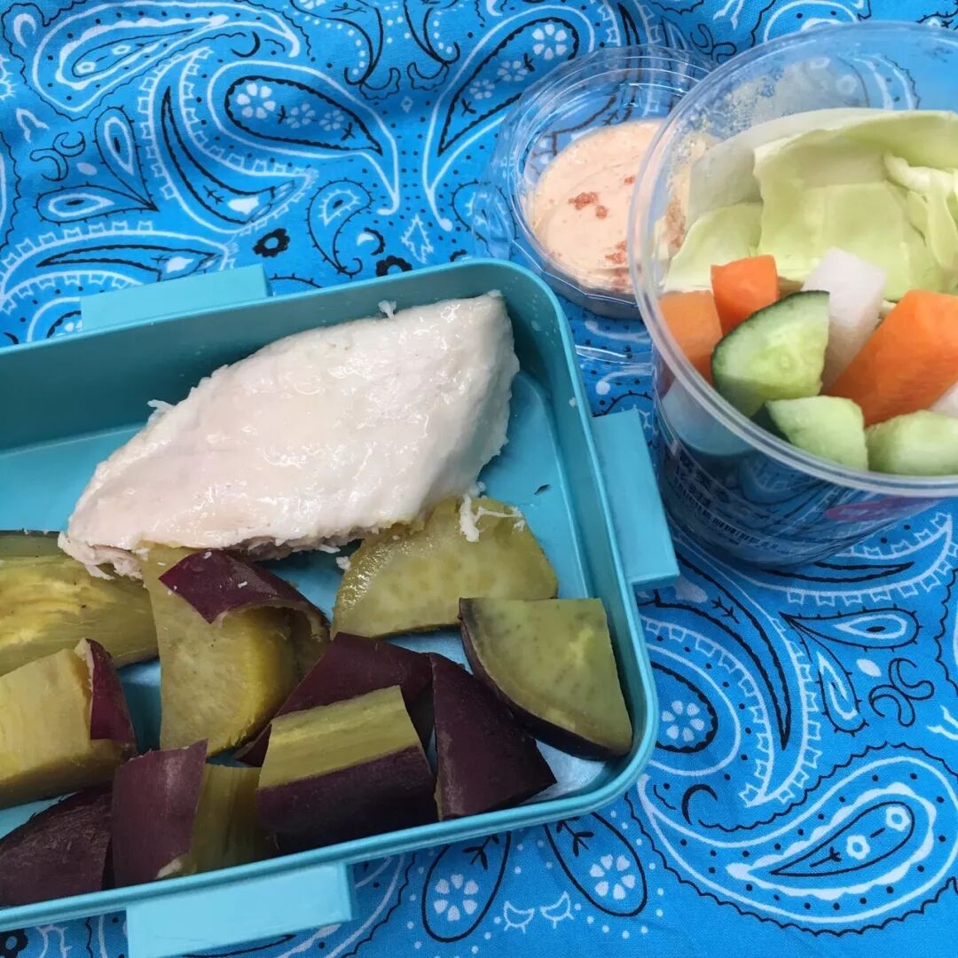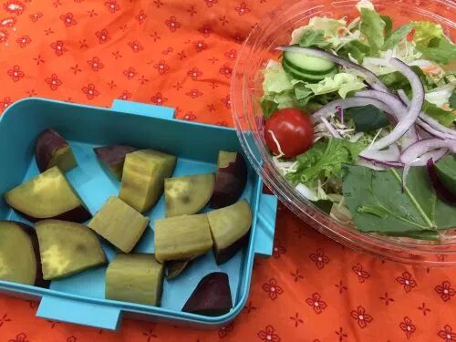 比如这份早餐:红薯+鸡胸肉+沙拉
