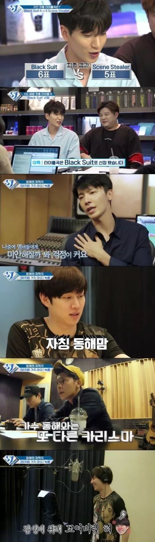 组合SuperJunior的新专辑在逐步完成中,今日团综《SJ Returns》公开第25篇“公开SUJU8辑主打歌”和第26篇“《不要像雨一样离开》录音-1”。节目中成员们就第8张专辑《PLAY》主打歌的选择聚在一起开会,,“BLACK SUIT”和 “SCENE STEALER”是最终主打歌的候选曲目,成员们纷纷表示:“两首歌都很喜欢,难以抉择,不知大众会喜欢怎样的歌曲。”最终以6比5的投票结果,定下《BLACK SUIT》作为主打歌。