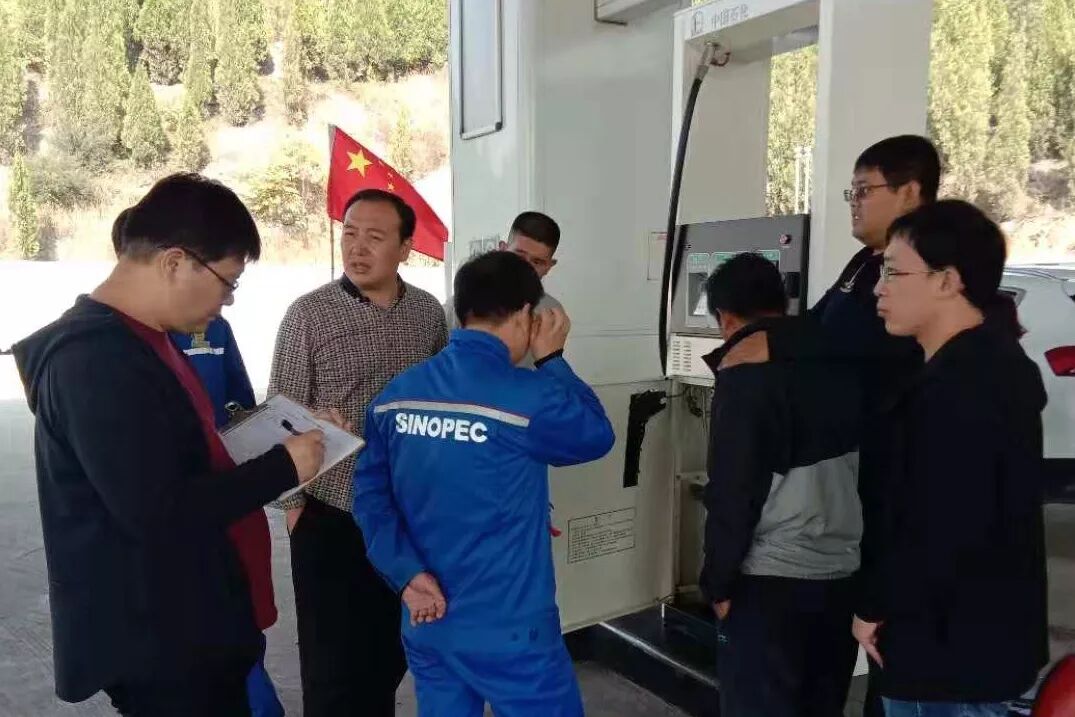 下图:经过紧张施工,国庆期间,阳泉公司三座加油站双层罐改造完工,相关部门放弃休息,对三座站进行了竣工验收,确保油站早日投营。
