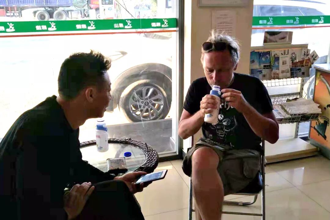 上图:10月3日,一位迷路的外国“驴友”走进阳泉公司水峪加油站,得到了该站的热情帮助。该站站长在手机上不仅为其设置了最佳线路,而且交代了安全事项,受到外国朋友的好评。