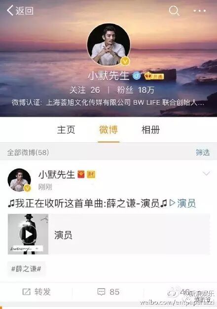 而小默先生则在微博分享《演员》,是在暗讽叶璇的节奏么。另一边,叶璇则转发自己的美照。