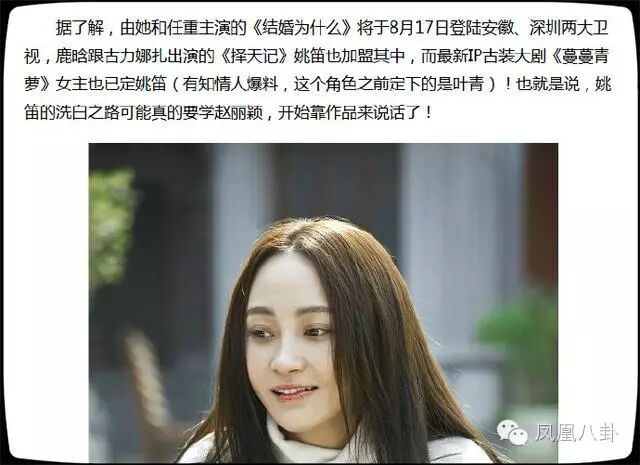 随后,有爆料称,叶青所指抢角色女星被曝正是姚笛。