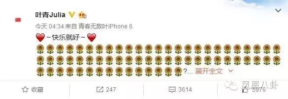 今天叶青删了怒斥的微博,发了一堆笑脸:快乐就好。这是雨过天晴想开了,还是把事捅出去痛快了?不懂这微博啥意思,还不如像陈冠希那样骂个明白。