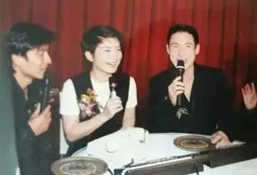 ▲ 96年某个活动请来了陈淑桦和张学友、刘德华两位天王,有记者问陈淑桦,坐在两位帅哥大明星中间有什么感觉?陈淑桦笑了笑说,要不你坐上来试试?