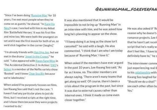 同时李光洙提到在采访中,没有一次缺少跟runningman相关的话题。(这不是废话(滑稽