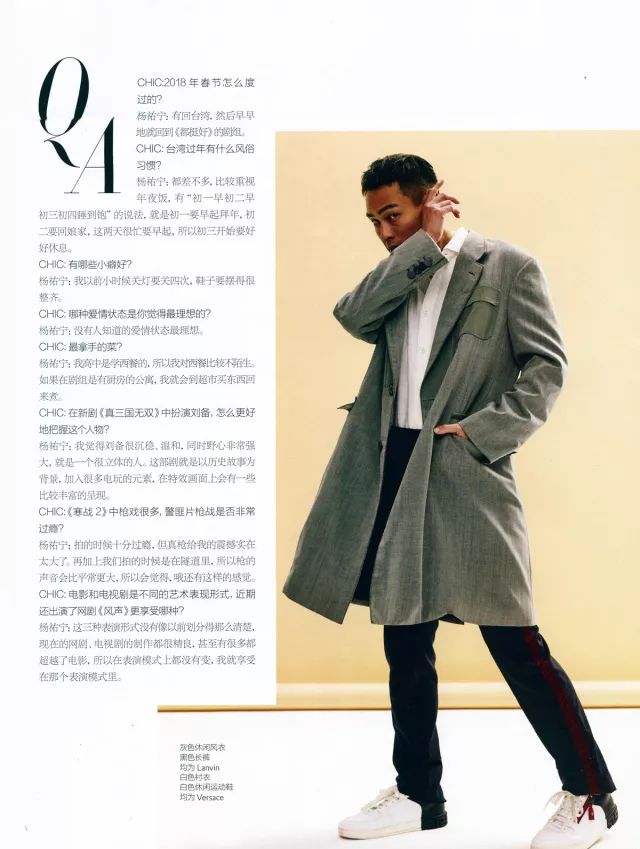 杨佑宁身着LANVIN灰色休闲风衣出镜杂志拍摄