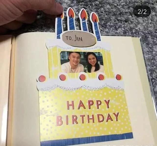 当然了,出来上面的这个美味的牛肉蛋糕,旁边还有女友亲手准备的手写相册,就像一个高中时期的小女生一样,还贴了爱心,附上了蒋劲夫的童年照,里面贴了两人恋爱的照片,这一把狗粮撒的...