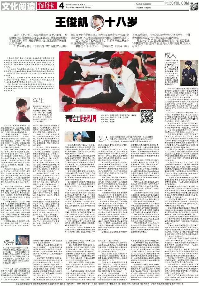 学生、艺人、孩子、大人,这些身份在他身上并行不悖、互相牵扯。一个考入北京电影学院的准大学生,一个履历无瑕疵的偶像,一个平民家庭出身的重庆娃儿,一个马上18岁的王俊凯——唱着《青春修炼手册》的孩子长大了。
