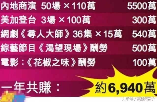 现在一年的收入已经差不多有七千万港币。