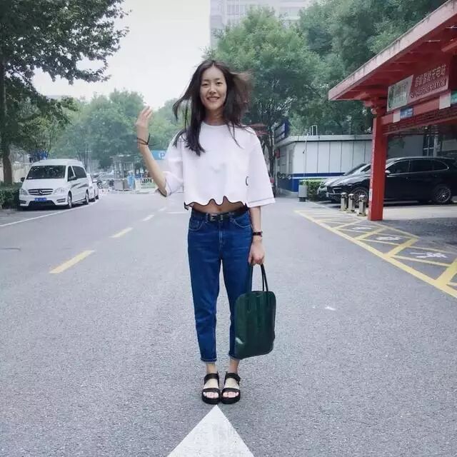 想要凹出小女人味,那学会这样穿就对了,短款的白色上衣搭配上一款牛仔 高腰休闲裤 ,休闲范儿足足的,搭配黑色元素的高跟鞋和整个搭配形成统一