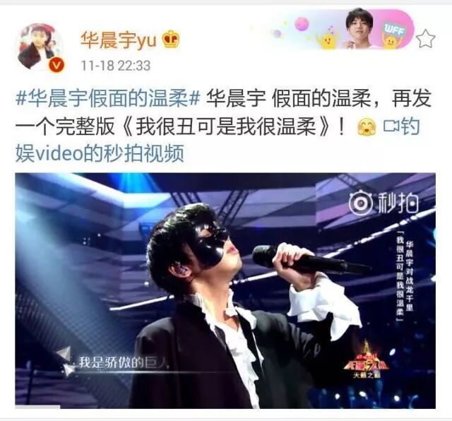 看着我们小华的微博,我好像明白了些什么哈哈哈,天籁节目组老是剪歌,有些话他真是懒得说第二次。改变不了环境,那就改变自己。剪辑版和完整版一前一后真满满的戏剧张力,细品下从话题到表情的配置截然不同。他就发了两个视频,多余的话一句没说,但我明显被他酷到跪下。现在看这两条博的数据,很讽刺也很有趣,他好像又找到更高级的方式:歌迷会做出我的选择,歌迷会告诉你们结果。一个剪辑版,一个完整版;一个官方话题,一个我的话题;一个无表情;一个[太开心];一个在前,一个在后。来,让大家选择更接受哪一版;来,结果放在这儿,你们自己看。