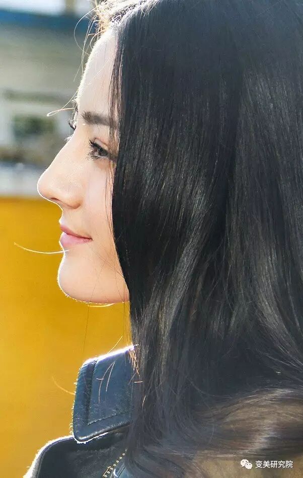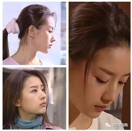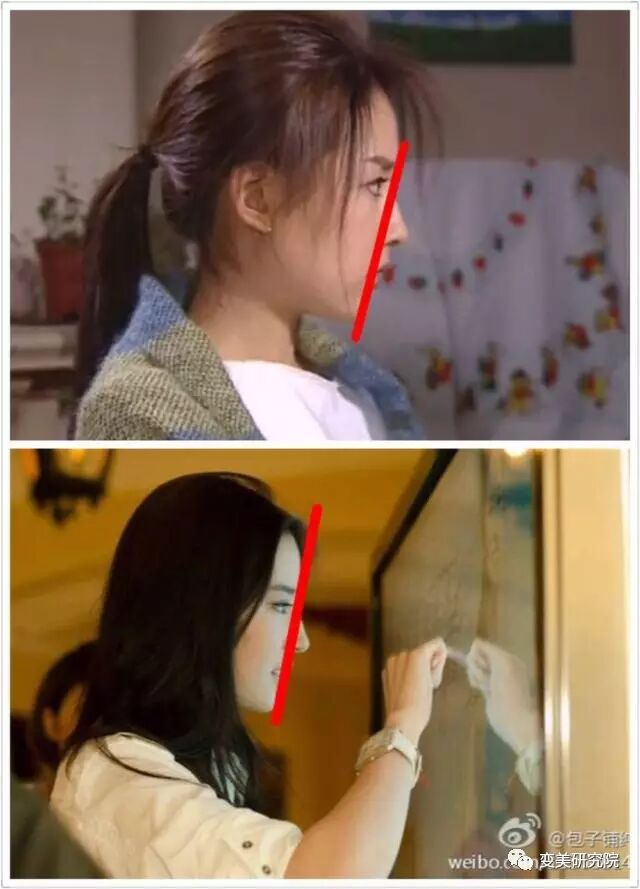 这种貌似直面型,实际上整个上颌位置都靠前的女星,如果是半侧面照,下庭的整个体块上的缺点就会暴露出来。
