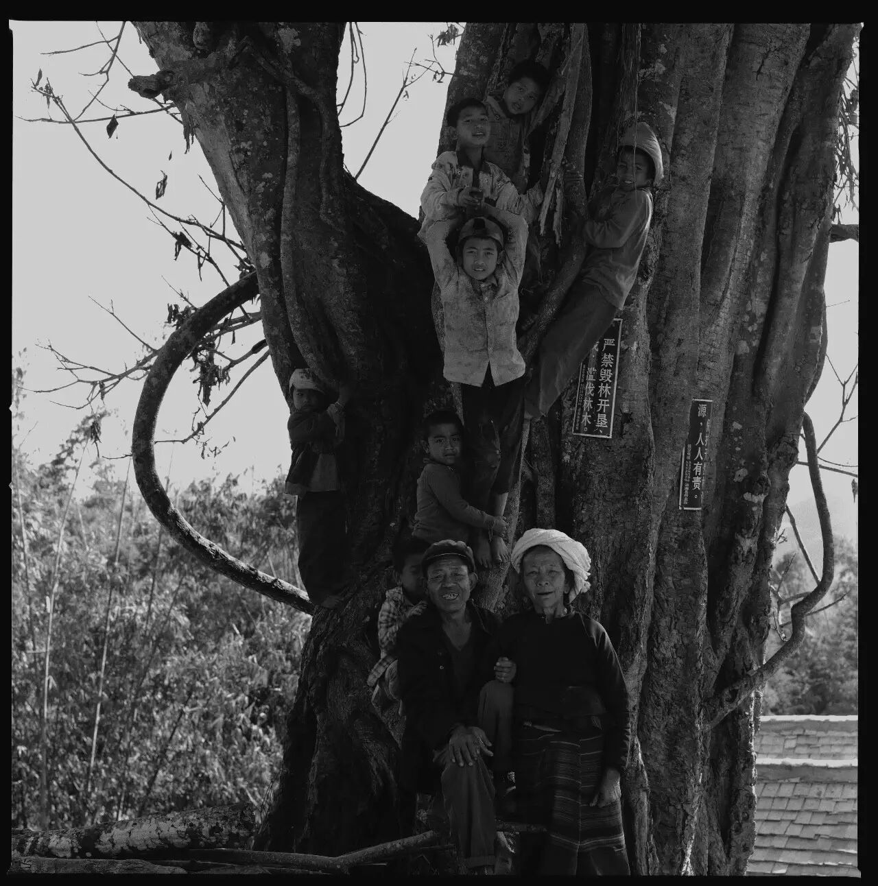 当年成亲时,他们家竹楼后面的一株大榕树两个人就能合抱过来,现在过了五六十年,这棵大树变得更加茁壮,需要五六个人才能合抱。正是这棵大榕树,见证了岩敢章、玉叫扁夫妇枝繁叶茂的恩爱生活。