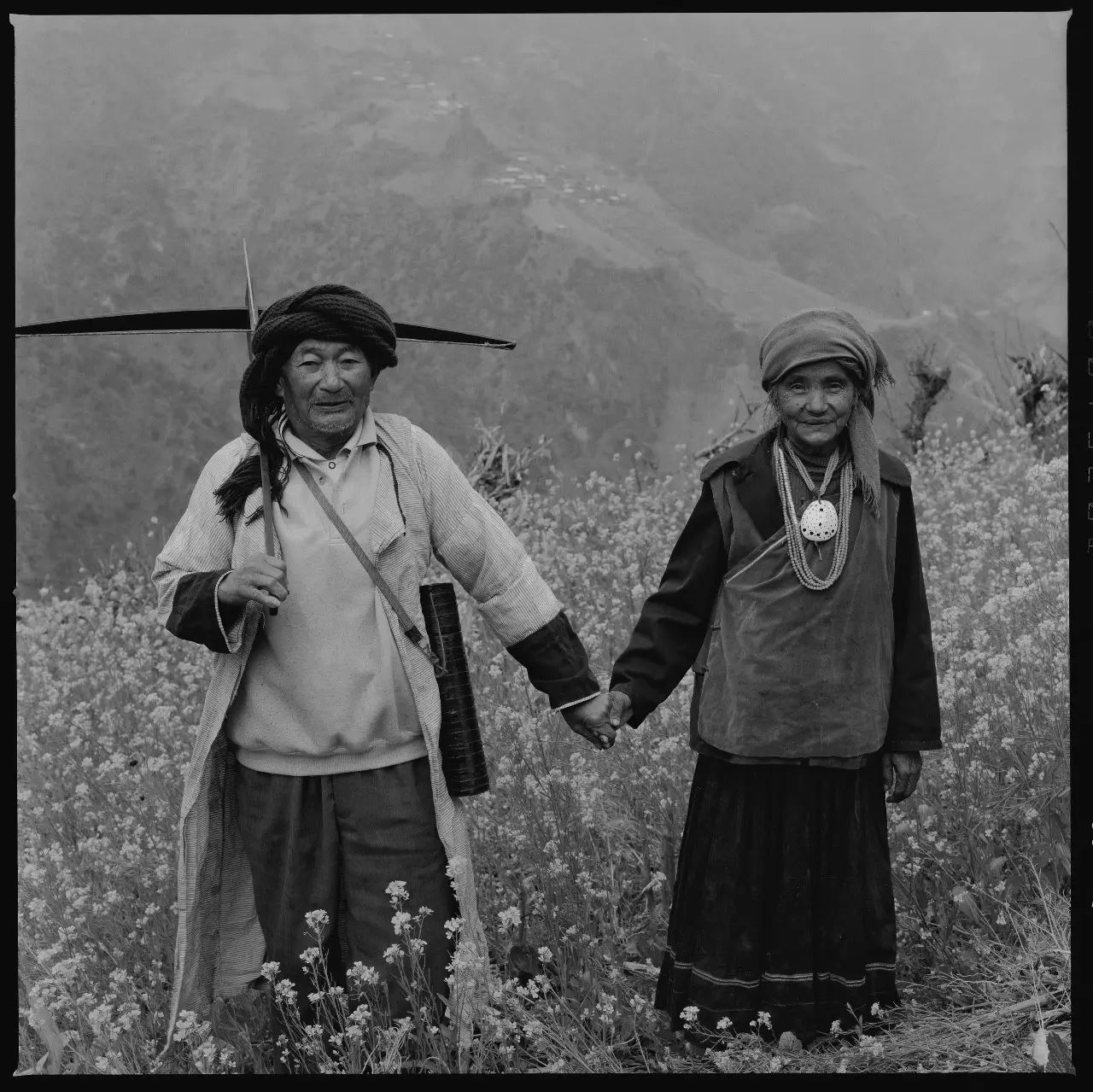 他们生活在人迹稀少的山区,日复一日,平静而自然。一九五七年,作为少数民族参观团的成员,先塞有幸去了省城昆明,自那以后就没有出过远门。先塞、戴罗夫妇一共生育了三男三女六个孩子,但有三个都因为发烧而夭折。现在两个老人跟小儿子切望一起生活。