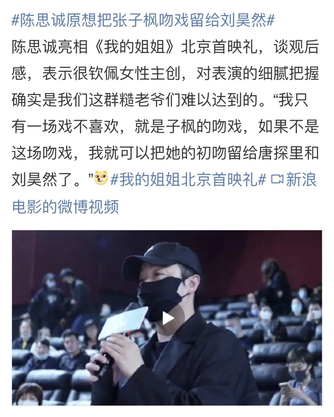 “这个电影什么都好,唯一的一点遗憾就是,我本来想把子枫的荧幕初吻留给刘昊然的。”