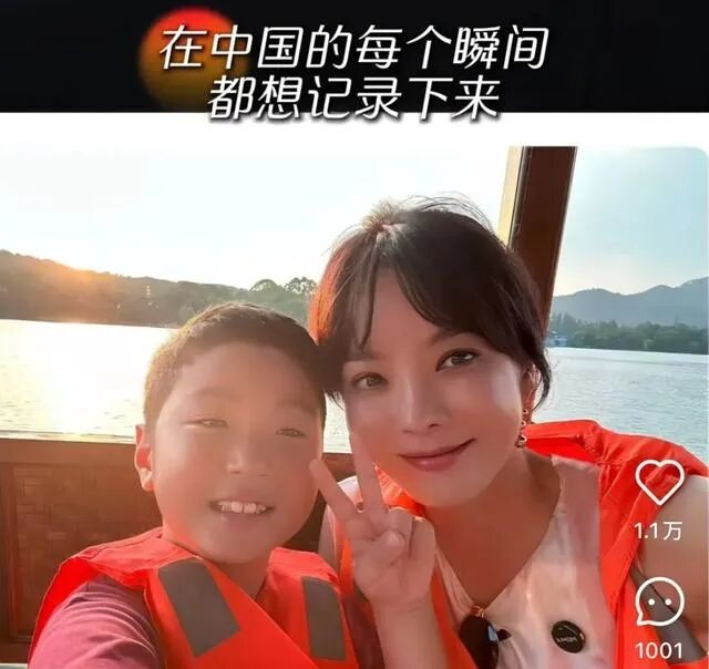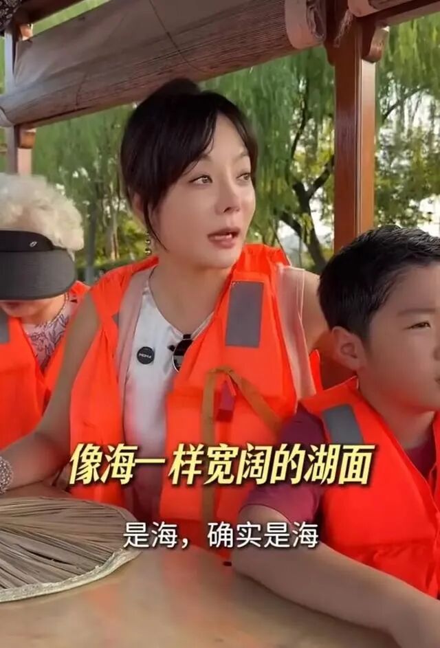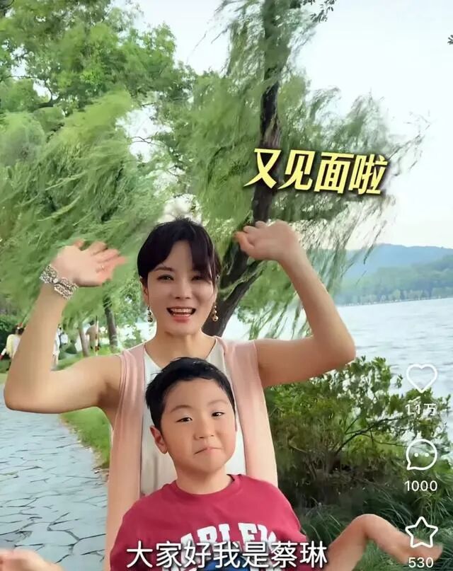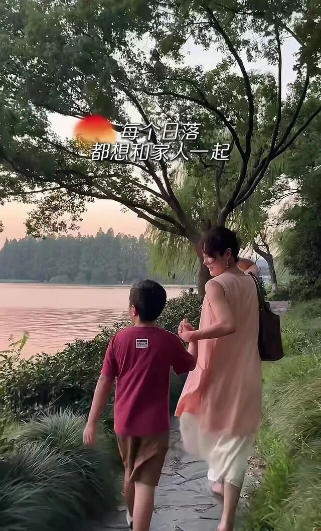 现实却是 蔡琳和儿子平平淡淡走在湖边