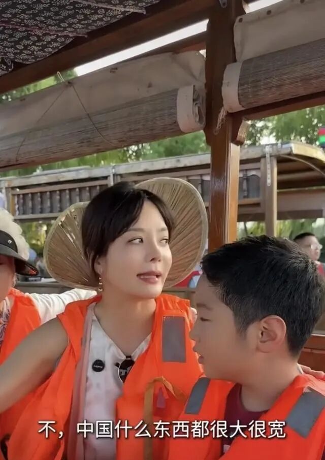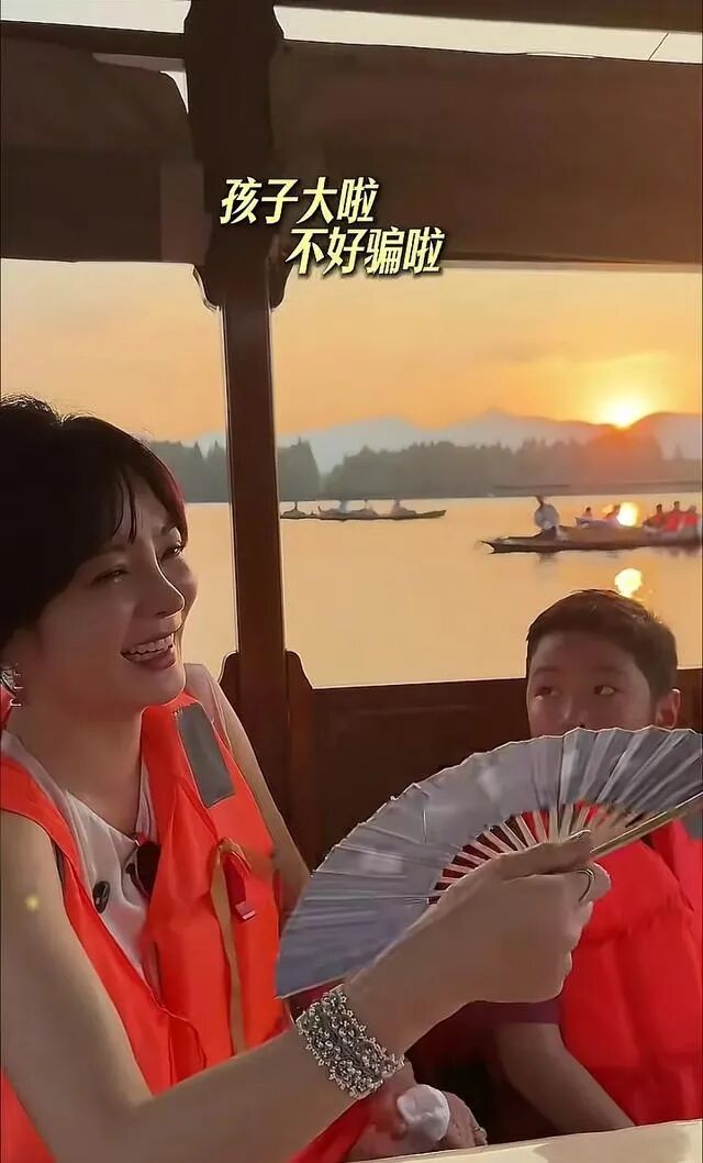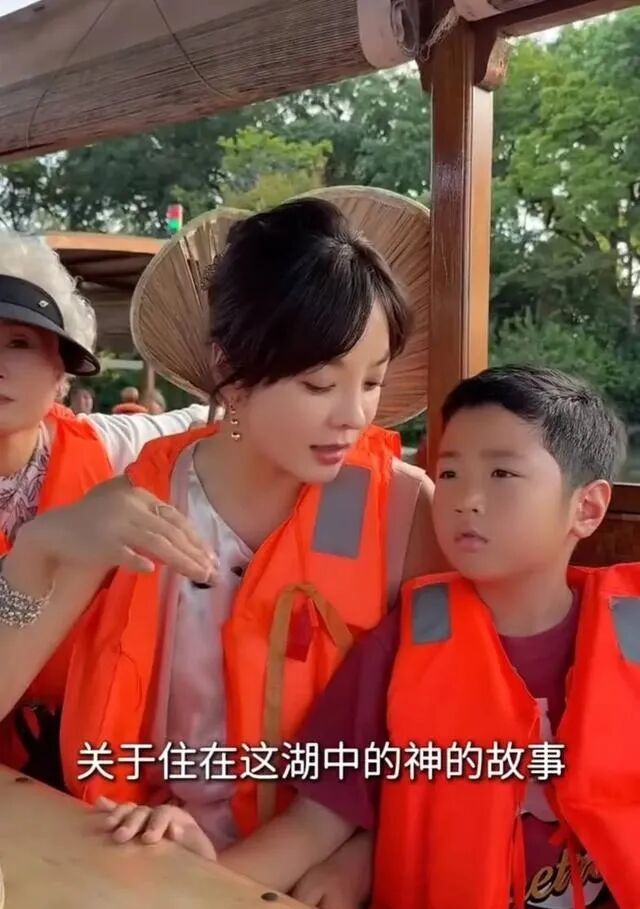 蔡琳带着7岁的儿子民宇 低调现身西湖