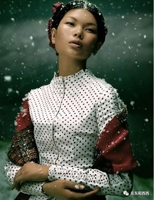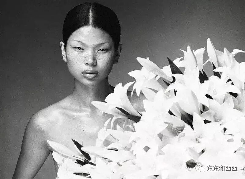 冯海给她拍了这组“雀斑与百合花”的照片↓↓挂在王府井大街上,当时就震惊了时尚圈,很多人看完说:这满脸雀斑,也太丑了吧。。。