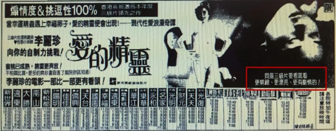 同时,两部电影还多次登报打广告,不忘将对手冷嘲热讽一番。《爱的精灵》打出标语:「同是三级片要看就看更精致、更漂亮、更有剧情的!」直指隔壁是粗制滥造,没有水准。