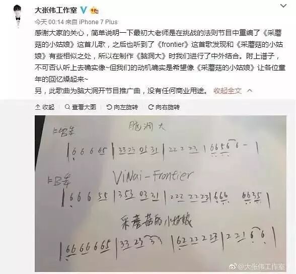 之前的那首《脑洞大》不仅被网友认为抄袭就连原作者都出来确认了,但大张伟还是不承认,这歌是进行了中外结合的。