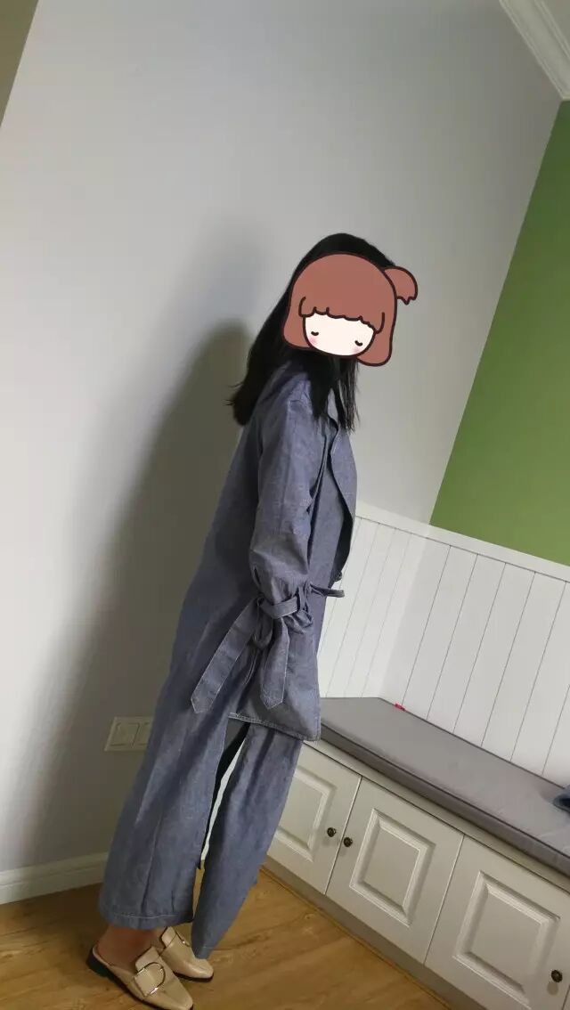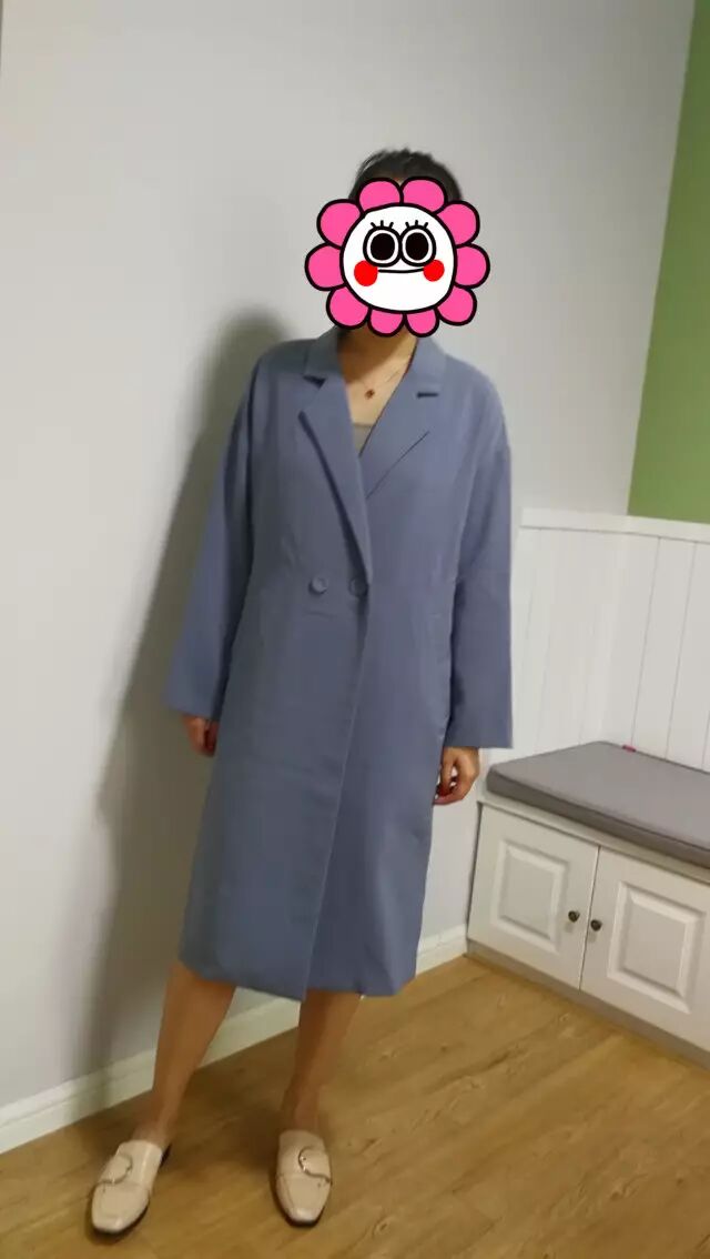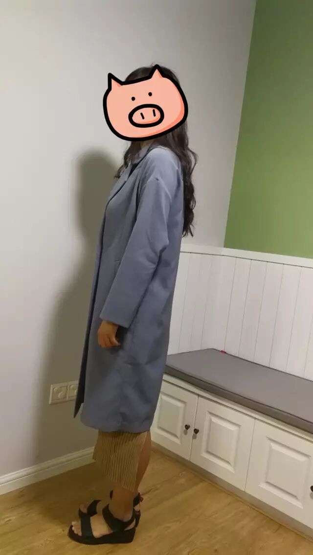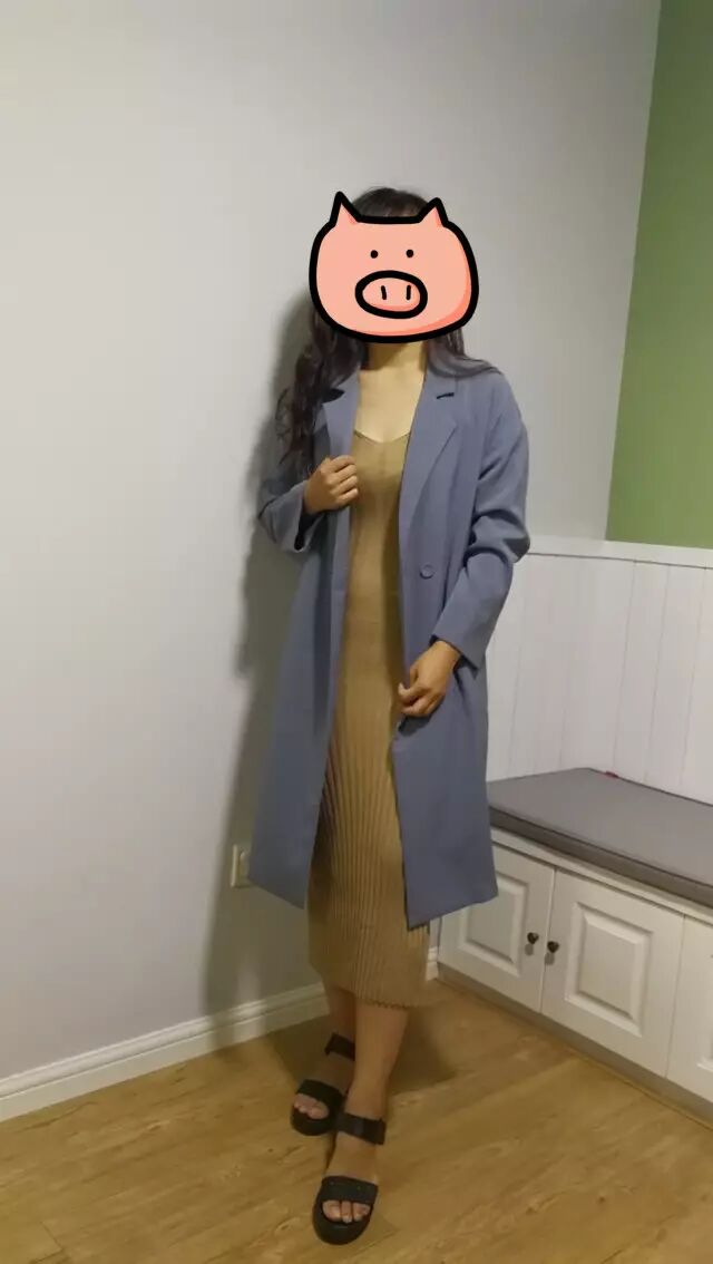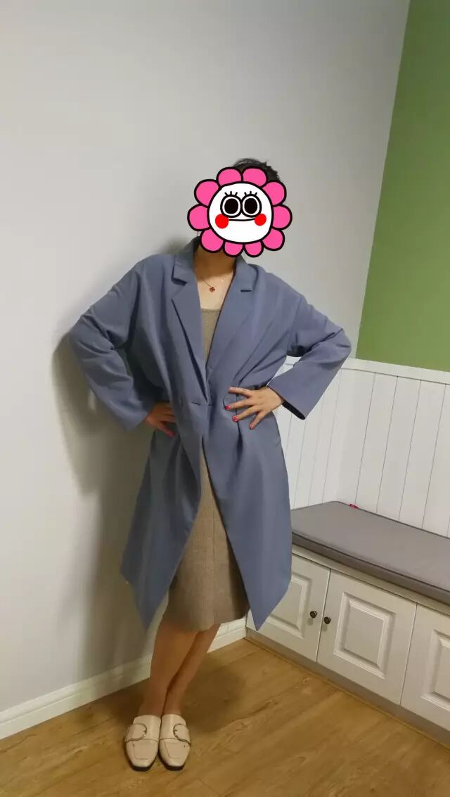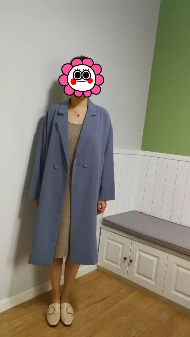 这件有色差。实物是灰度比较高的雾霾蓝,没有小宜的明亮色重。