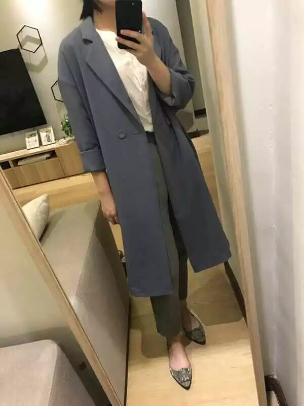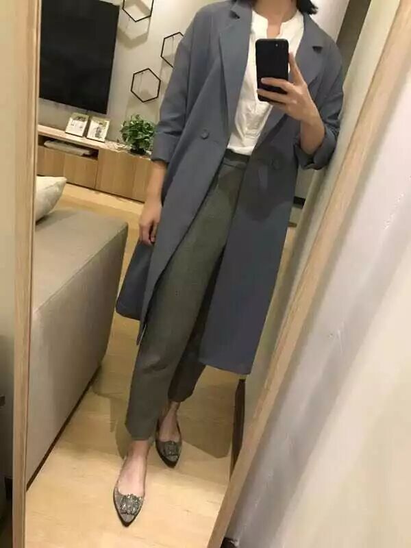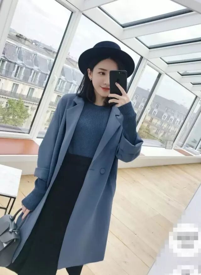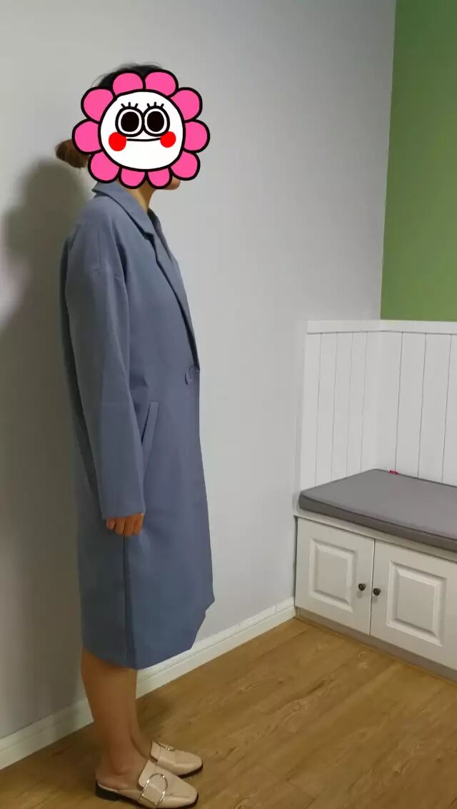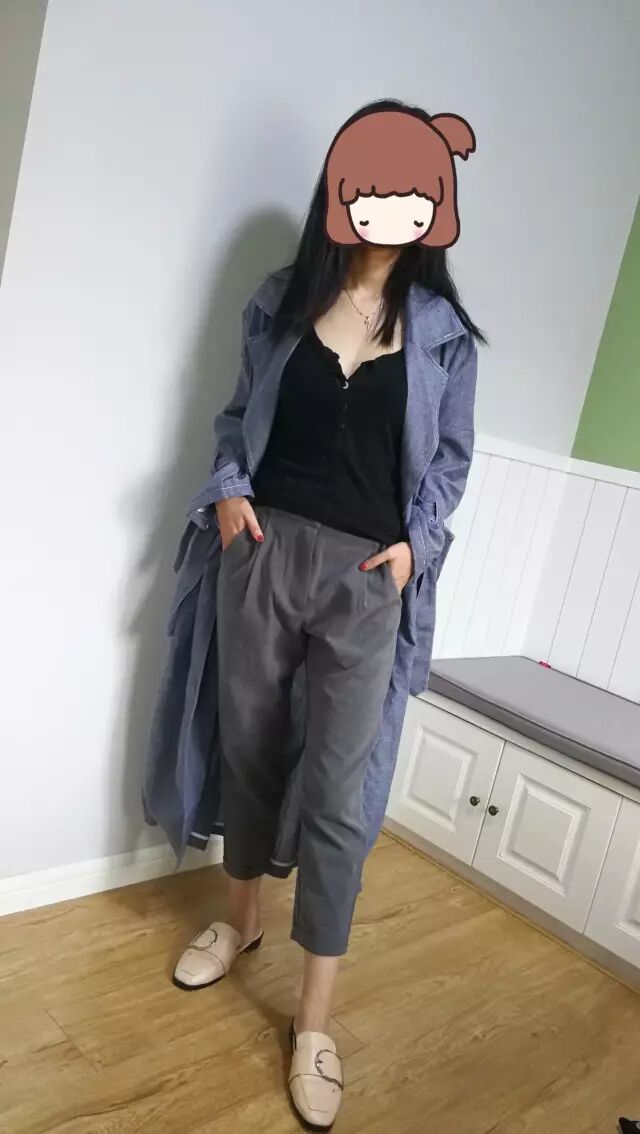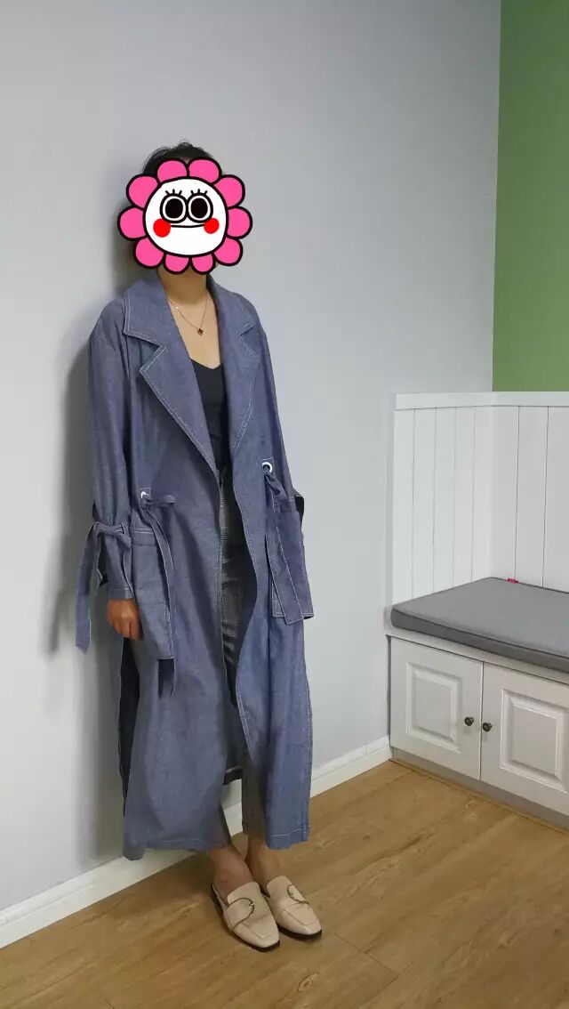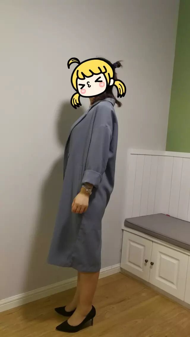 这件有色差。实物是灰度比较高的雾霾蓝,没有小宜的明亮色重。