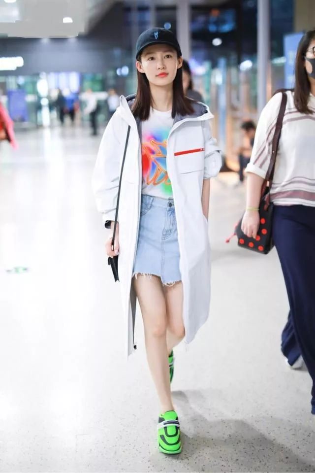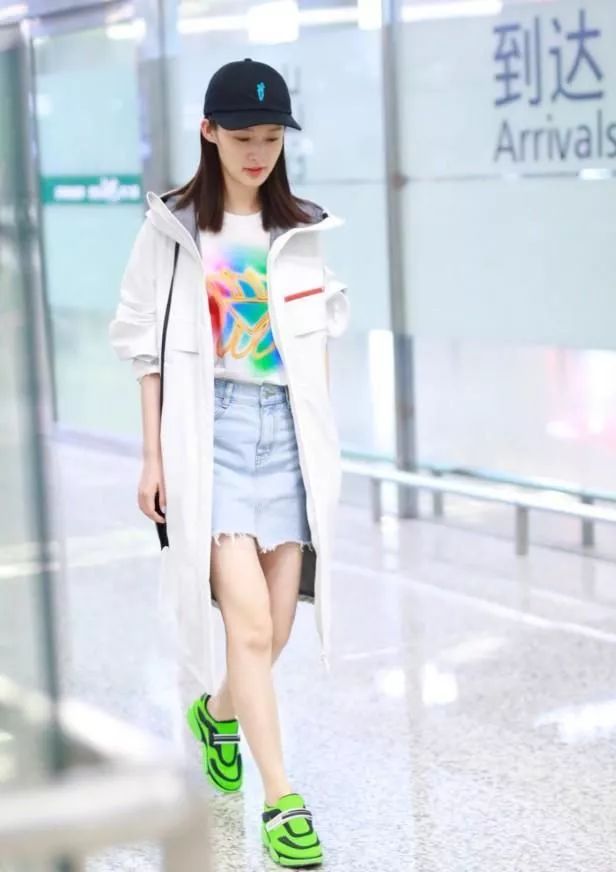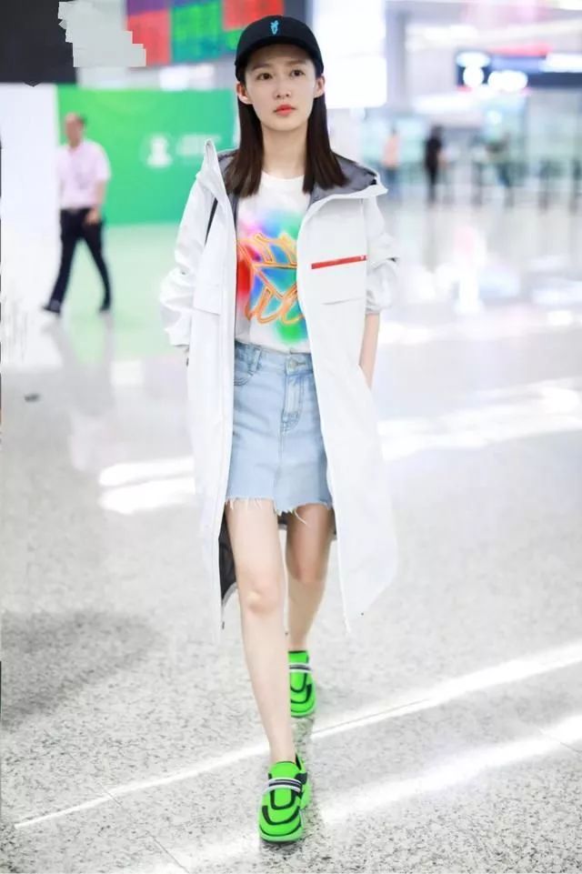 今年很流行的一句话就是:要想生活过得去,身上必须带点绿!李沁这次现身机场就是身体力行的表现了这句话,一身休闲装亮相看似平淡无奇,但是亮点却在鞋子上,一双超级抢眼的绿色运动鞋瞬间吸睛,十分抢镜,不过和整体LOOK还是十分呼应的,很nice。