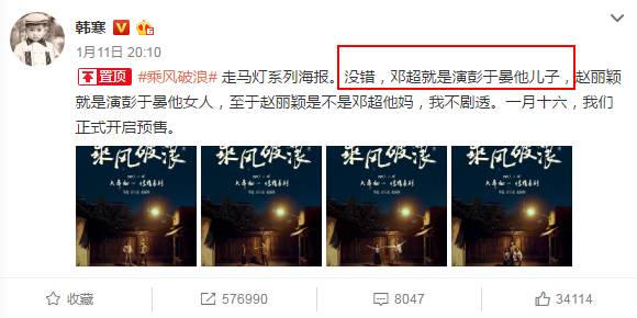 可是导演韩寒在微博的一记剧透,让诸多猜测炸开了锅。