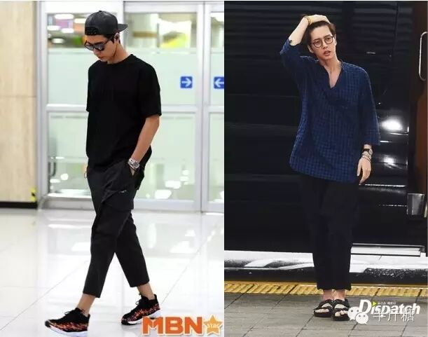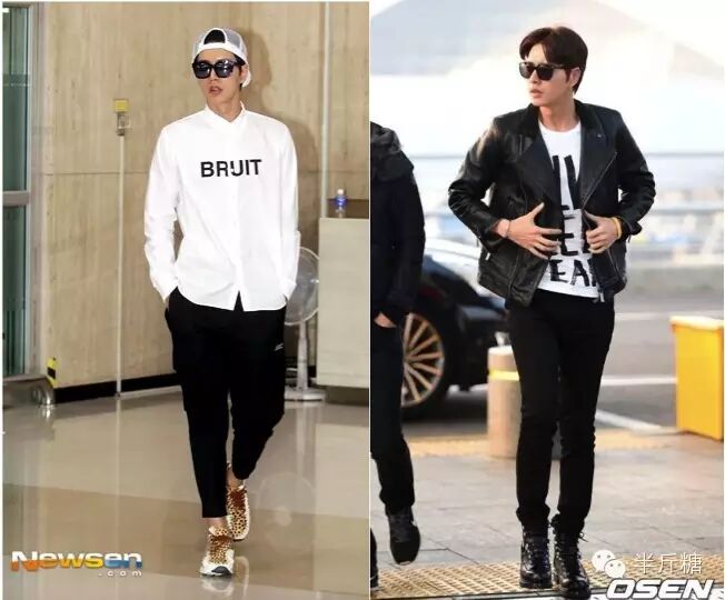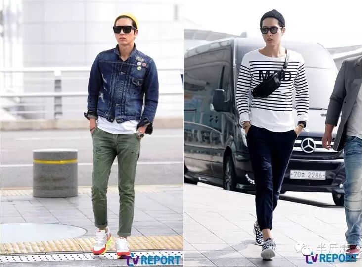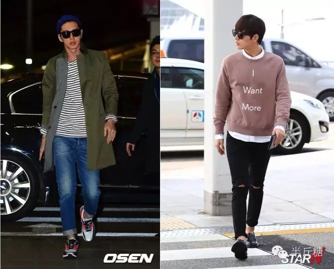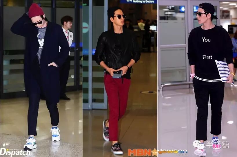 闹,作为“完美男友”典范,会穿衣那是标配,朴海镇的机场装倒蛮统一的,墨镜、球鞋,还特别钟爱七分裤,腿长了不起啊!