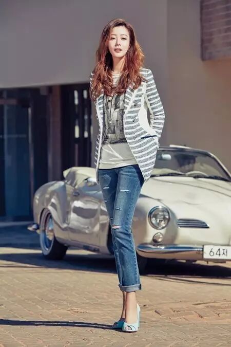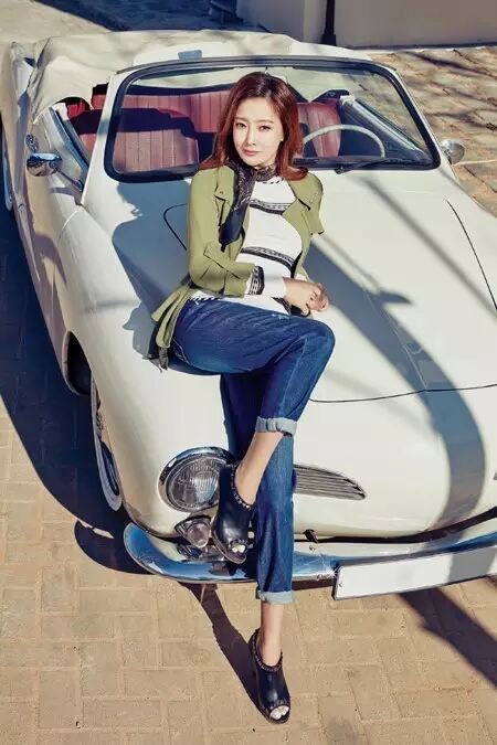 金喜善为女性服饰品牌拍摄2016年春季画报,展现完美的身材比例,就像20代少女一样。