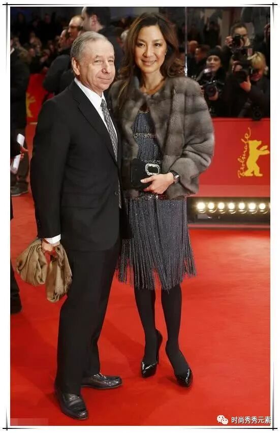 同样是活动中的搭配,这次走的是贵妇风,流苏长裙外一件灰色的皮草,下身是灰色的打底裤,低调的色彩搭配,呈现了很稳重的效果。