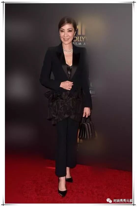 下身是基础款的黑色西装长裤,脚上一双黑色的尖头高跟鞋,黑色衬得人非常沉稳,典雅气质满满。