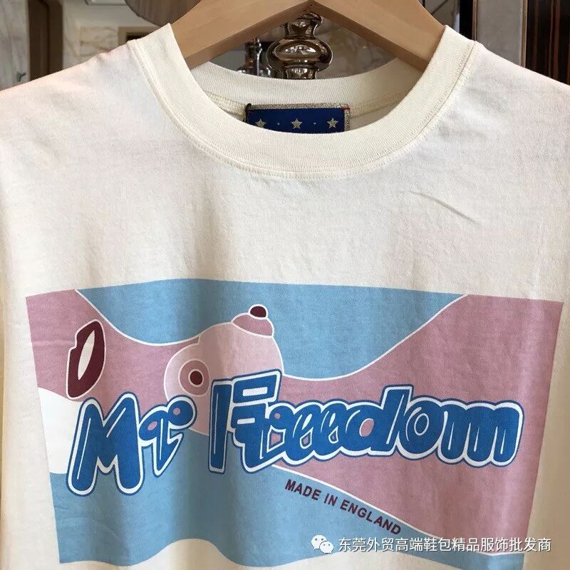 文化内涵 采用著名的MR FREEDOM (在西方国家 MR FREEDOM 有着不可替代的地位 穿上它你走在国外街头都没有违和感 )印花 印花的字体来自Elton john常去的其中一家伦敦古驰服装店的装饰..真正的文化衫 一件衣服满满的文化内涵