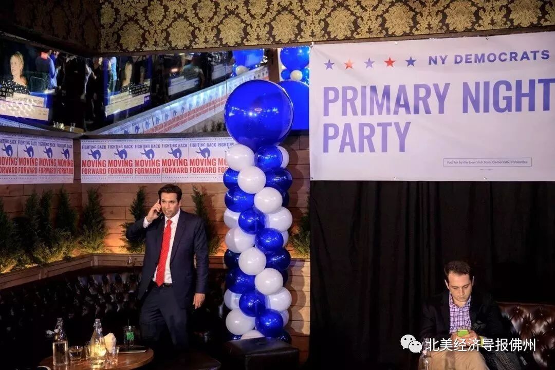 图为纽约州州长民主党初选的选后派对,现任州长库莫击败挑战者女明星尼克森。摄:DrewAngerer/Getty Images