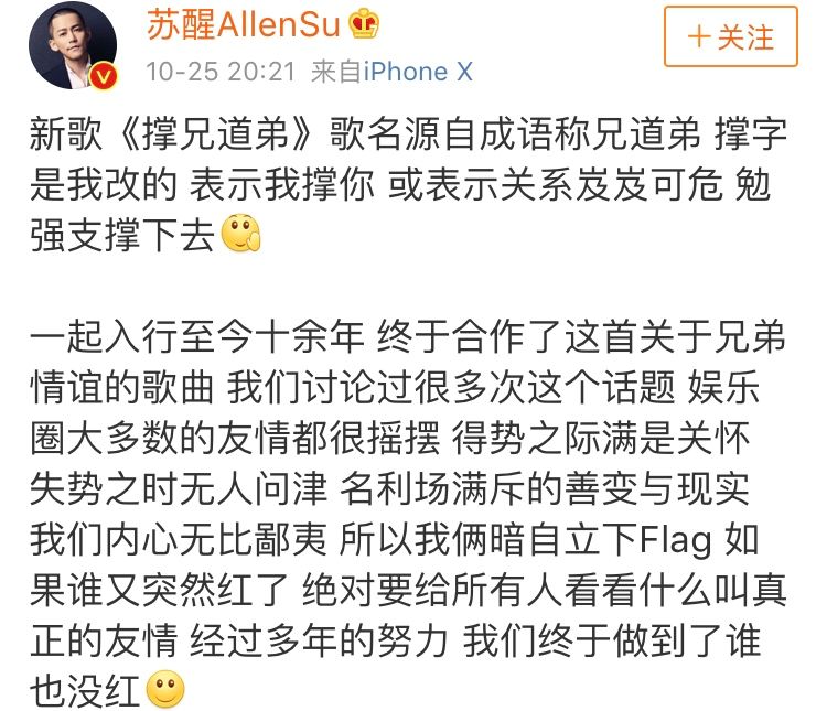 这首歌唱的正是在娱乐圈的友谊,苏醒看得很透彻: