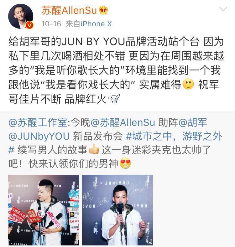 胡军的品牌活动开发布会,叫他站台▼▼▼