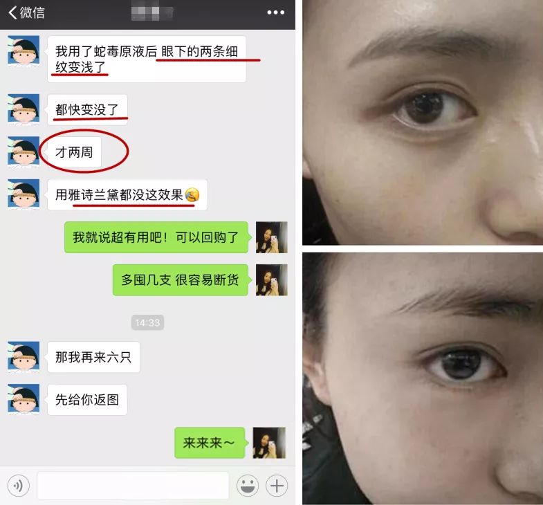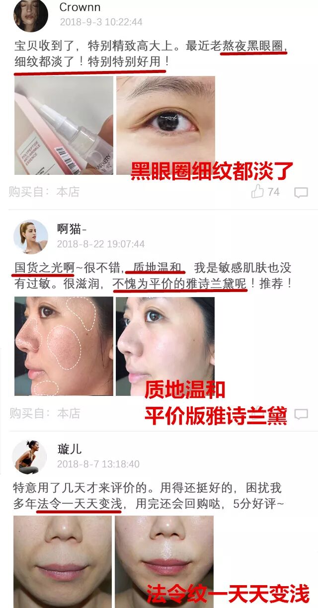 真实买家秀反馈,使用一周后眼周的干细纹、黑眼圈和色素沉淀都消失啦!