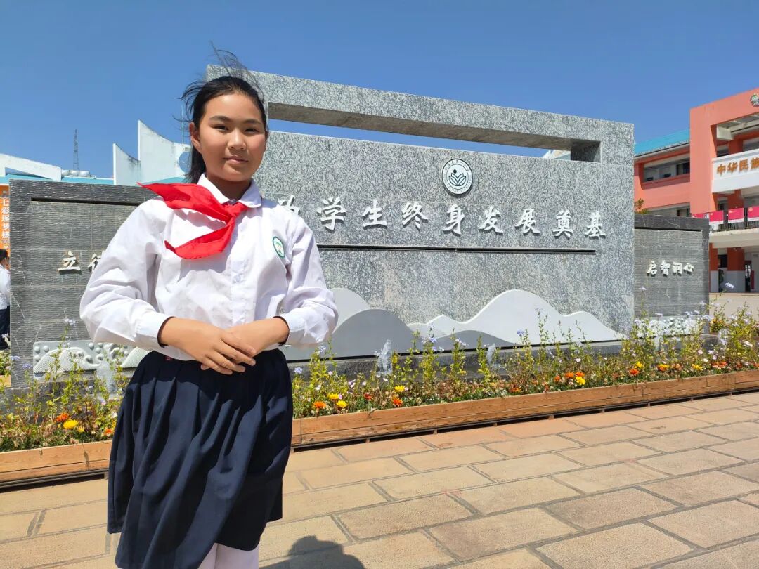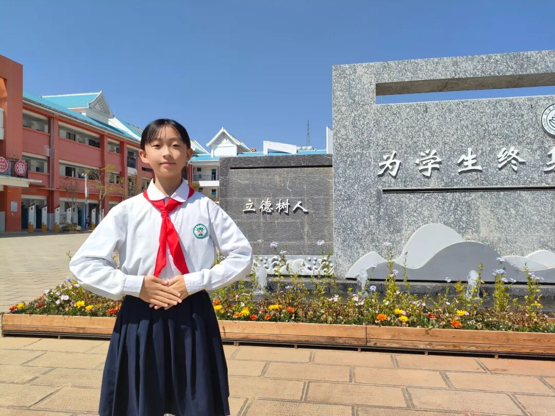 普玉洁同学是一名品学兼优的少先队员,她率直聪颖、努力上进。在学校能严守校纪班规,尊敬师长,团结同学,关心集体。在本次校园卫生工作解说中,她把学校创卫故事融汇贯通,热情大方地讲解给大家听。她的阳光自信、落落大方、丰富的肢体语言得到了老师们的认可,也把校园卫生工作故事讲述得生动有趣。