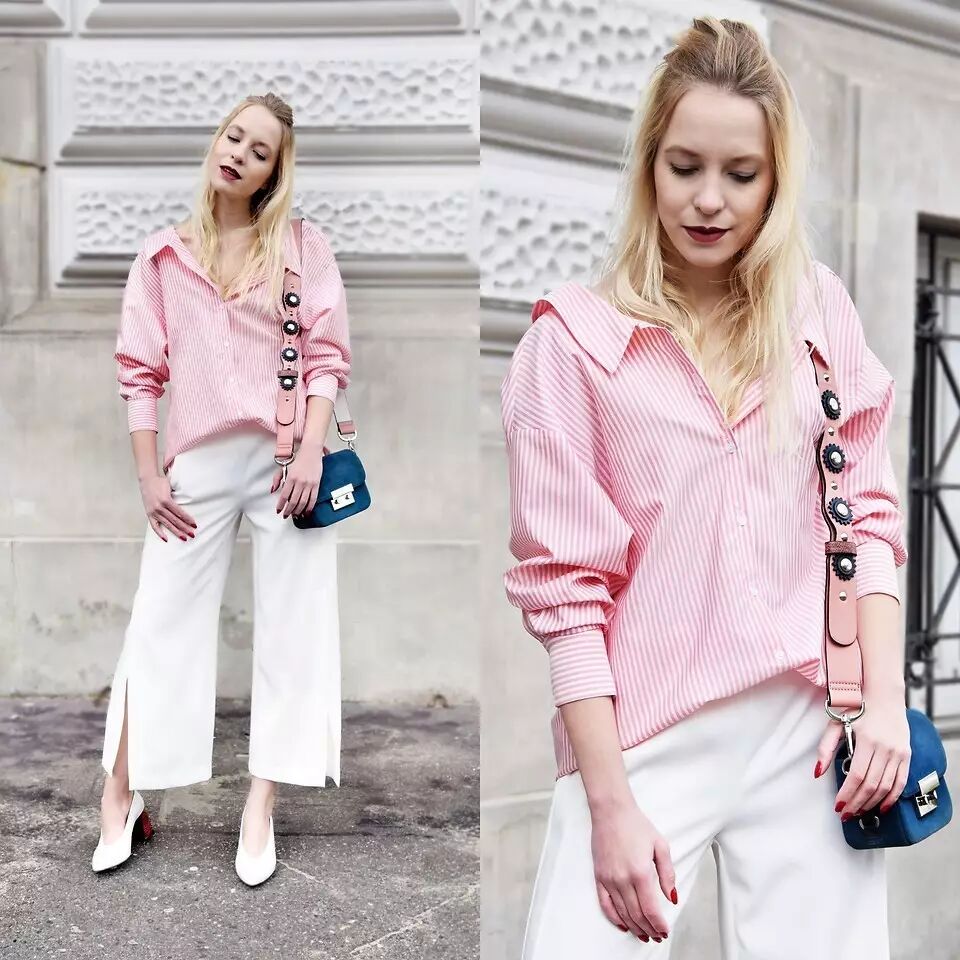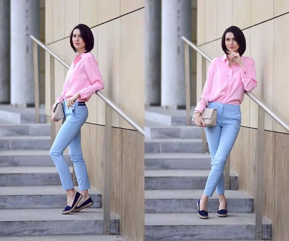 牛仔裤配粉色衬衫,怎么看都不会出错!