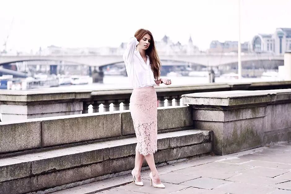 用白衬衫搭配蕾丝裙,醒醒只看到满满的女人味!