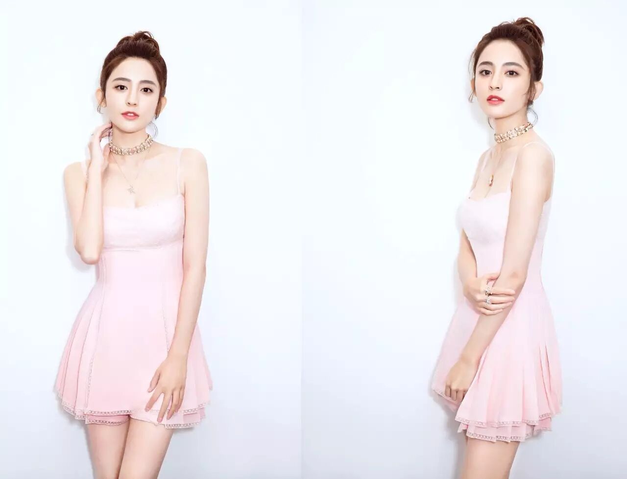 吴昕的粉色连衣裙,荷叶边下摆,更添甜美气质。