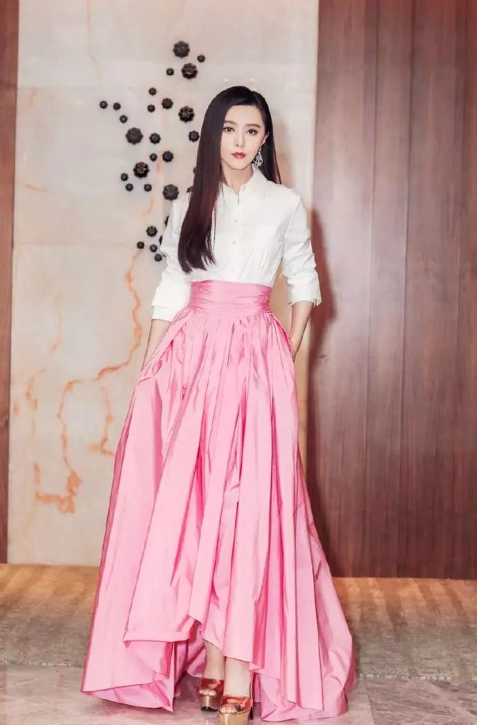 范爷用白衬衫搭配粉色长裙,将粉色穿得霸气十足!