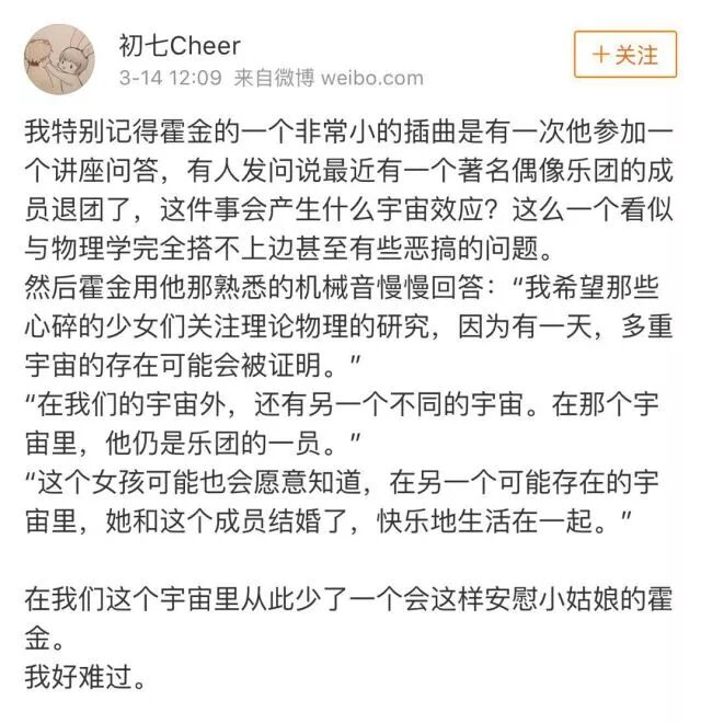 霍金生前也许并不是科研成果最为突出的科学家,但并不妨碍他成为科学界最耀眼的明星。他用风趣的语言写下《时间简史》,为大众读者科普宇宙奥秘,也用幽默感激励世界各地的人们。