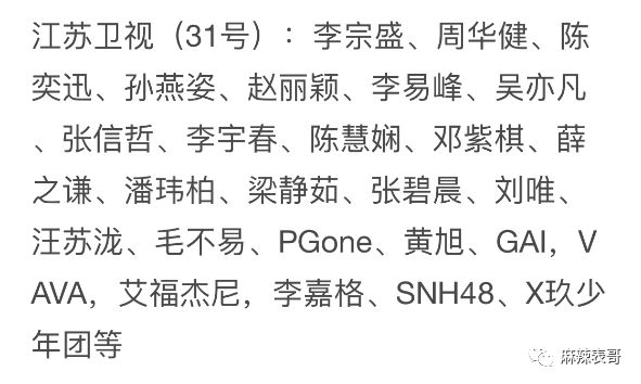 相比较另外三家,湖南台的几乎都是《歌手》+《快男》+流量,比如TFBOYS的粉丝加起来估计都能绕地球三圈了,外加今年走红最迅速的胡一天,流量应该算最爆无疑了。