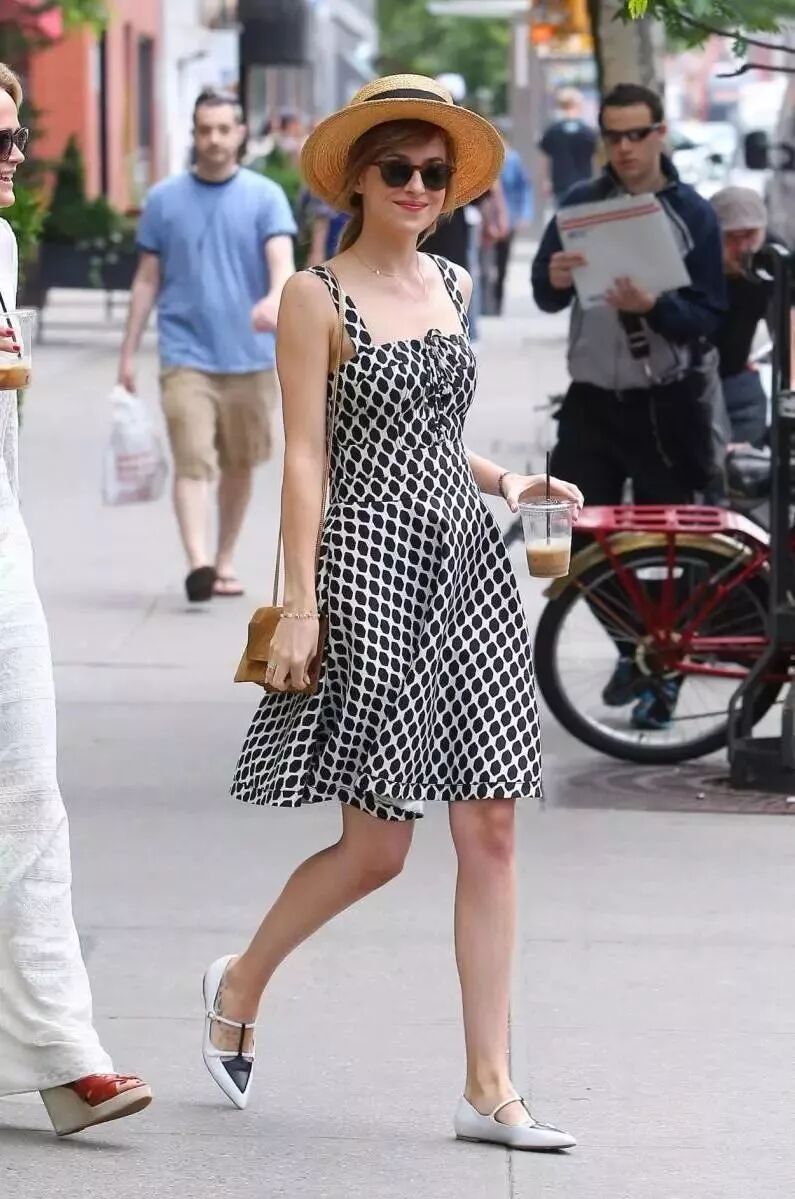 有波点、T恤、一字带凉鞋、茶歇裙...